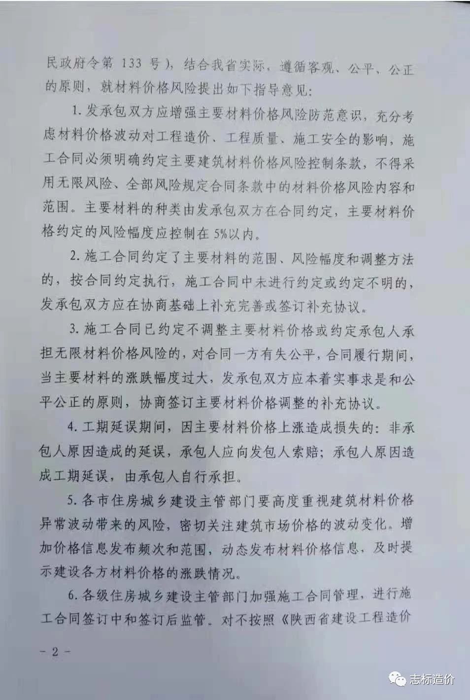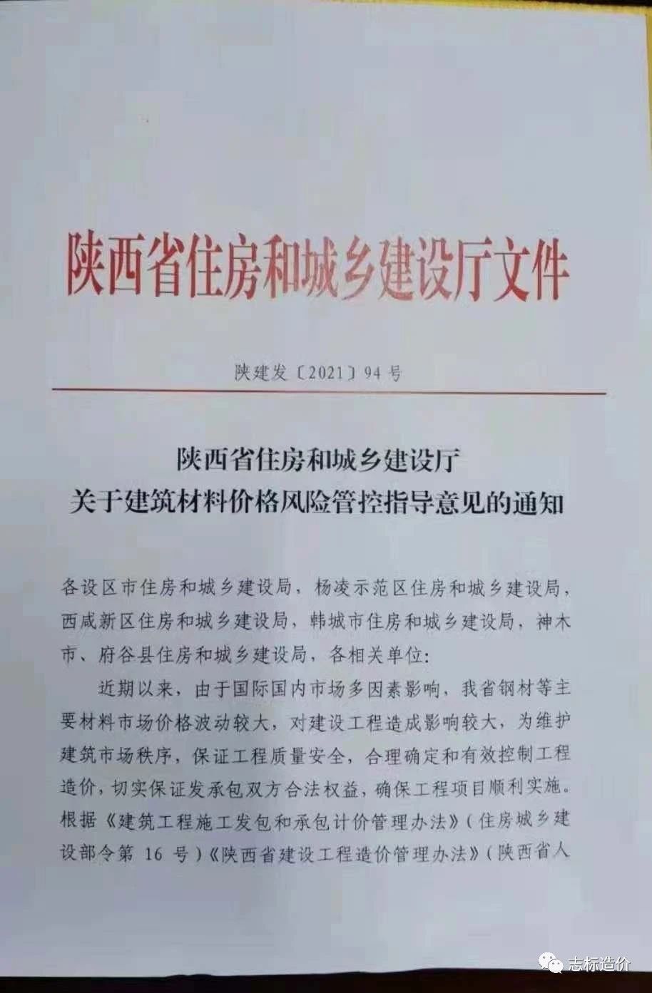 一、從2021年春節(jié)后受國際國內(nèi)市場多因素影響,鋼材、銅等建筑材料價(jià)格波動(dòng)較大,對建筑工程造成影響較大,2021年5月19日陜西省住房和城鄉(xiāng)建設(shè)廳發(fā)布:陜建發(fā)【2021】94號(hào)文件關(guān)于建筑材料價(jià)格風(fēng)險(xiǎn)管控指導(dǎo)意見的通知。