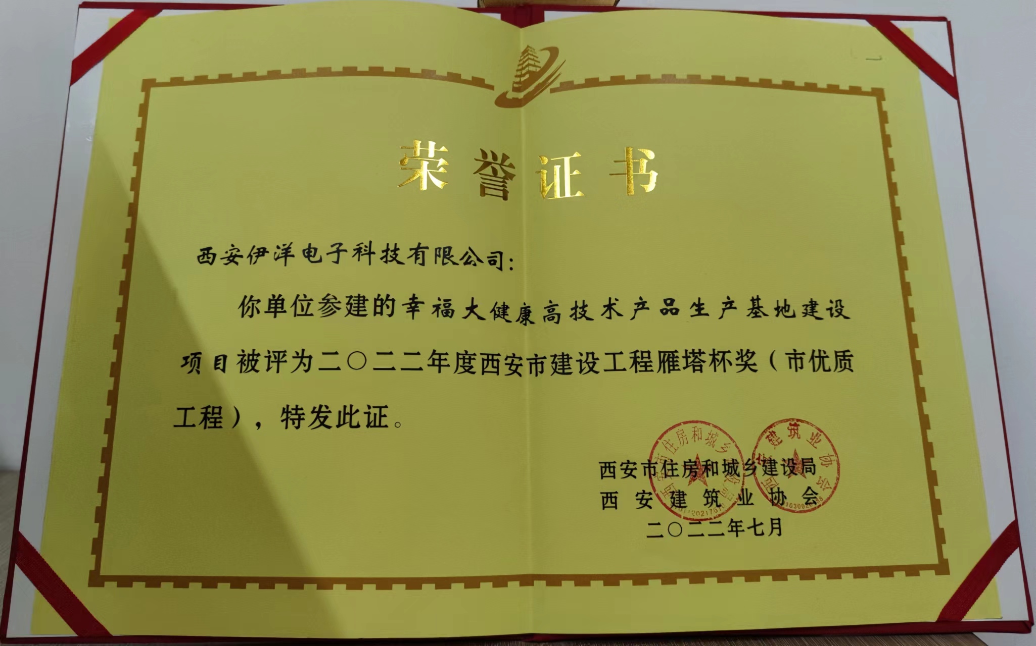 祝賀我公司參建的“幸福大健康高技術(shù)產(chǎn)品生產(chǎn)基地建設(shè)項(xiàng)目”榮獲2022年度西安市建設(shè)工程雁塔杯獎(jiǎng)! 我公司將再接再厲,充分發(fā)揮優(yōu)質(zhì)工程的引領(lǐng)示范作用,勇于創(chuàng)新,為加快推進(jìn)全市住建領(lǐng)域高質(zhì)量發(fā)展做出新的貢獻(xiàn)!
